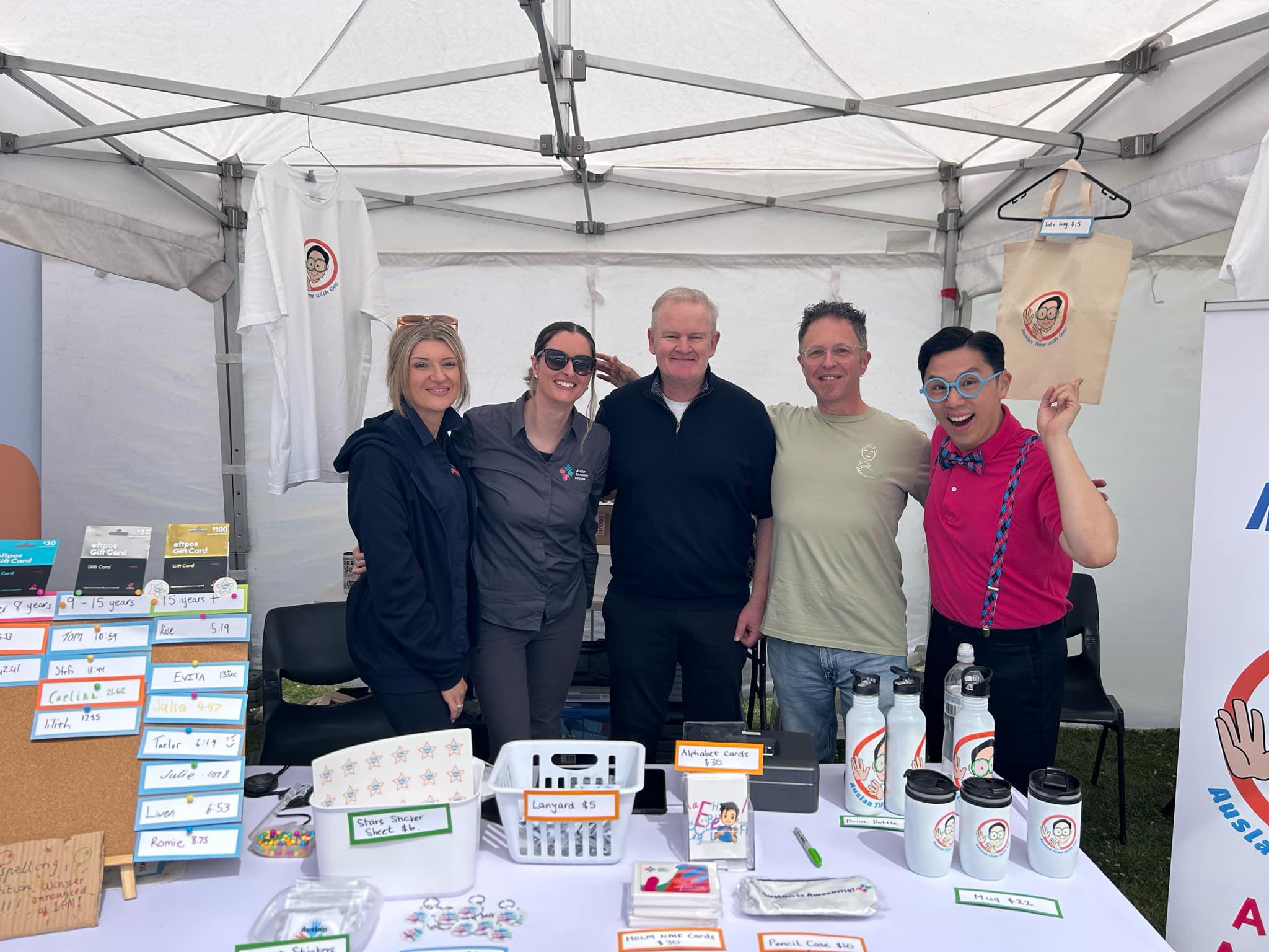 The even brought together families, friends, and Auslan users from across the country for a day of community, culture, and celebration. The team from Auslan Education Services (AES) and Auslan Time with Geo hosted a busy stall filled with fun, and plenty of visitors. Naomie and Thomas ran AES’s popular Fingerspelling Competition, where participants of all ages put their skills to the test for a chance to win great prizes.